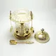 Икорница выполнена из премиального хрусталя, усиленного латунными элементами, и покрыта благородным золотом 10 микрон. Внутри – драгоценные камни: лазурит, шпинель и фианиты, добавляющие блеск и неповторимость каждому элементу.